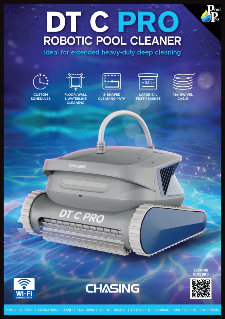 The Chasing DT C Pro Pool Cleaner suits all pool surfaces, and has the ability to climb wall and stairs, and can also clean the waterline. It also suits pools that have a sloped beach entry.