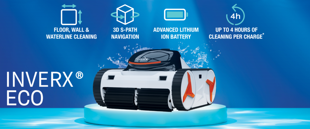 Powered by an advanced Lithium-Ion battery, the InverX Eco XE40 robotic pool cleaner delivers up to 4 hours* of cleaning per charge. Designed for all pool surfaces, from concrete to fibreglass, it autonomously maps and executes efficient cleaning cycles.